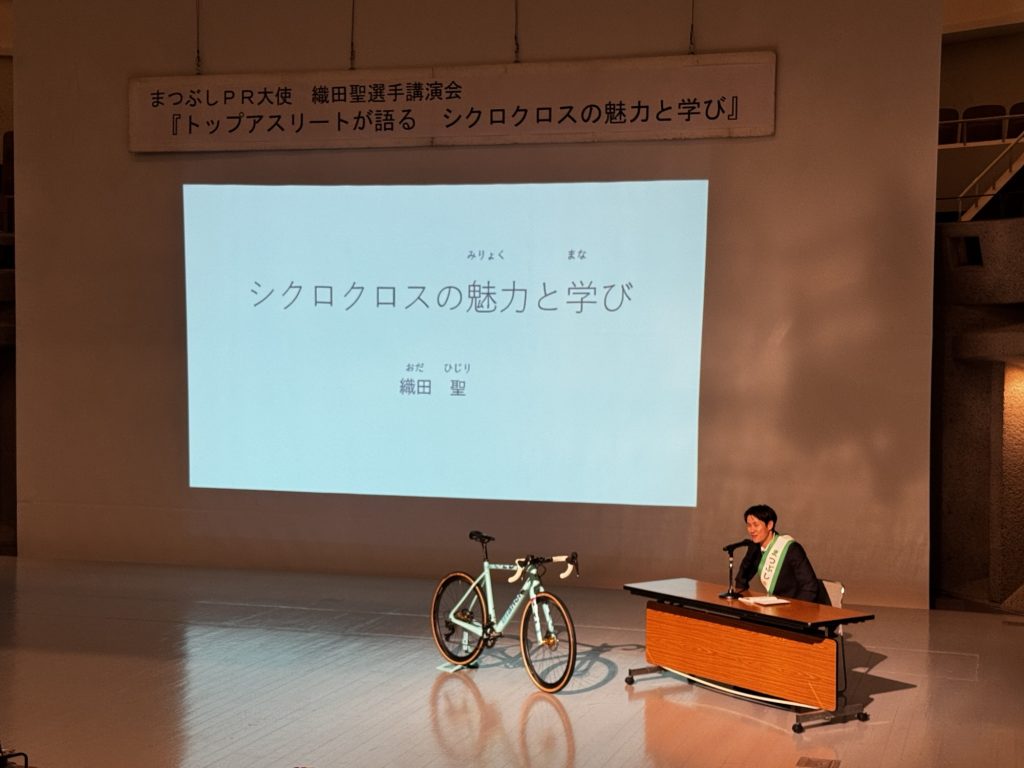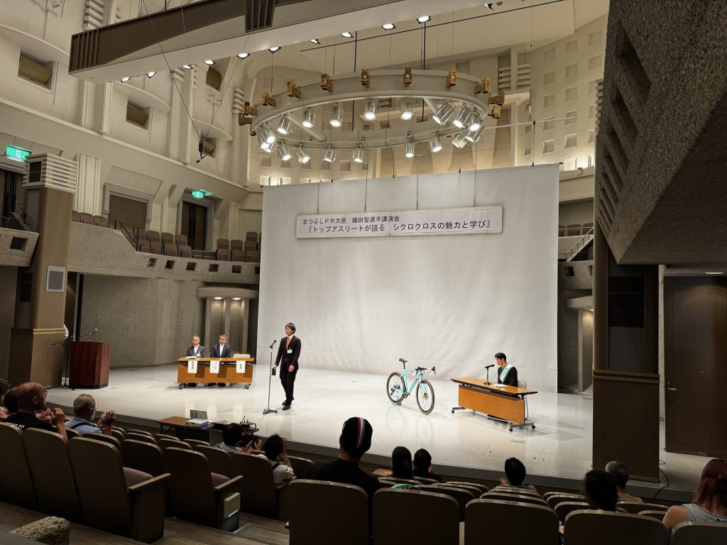 「シクロクロス」についてと「学び」についてお話しさせていただき、レースとは違う緊張感のもとなんとかやり切れた!というのが今の心境。