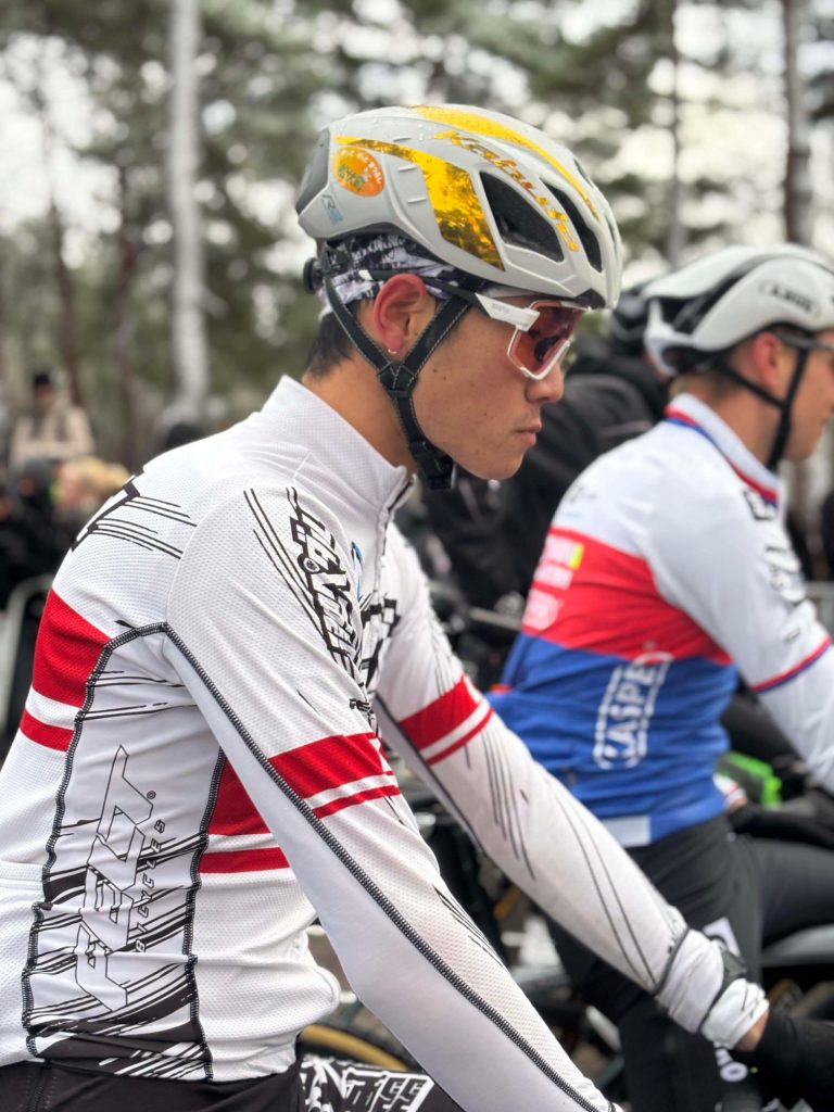 半袖インナー+シクロクロススーツで走るつもりで準備していたが、急遽長袖インナーに変更。